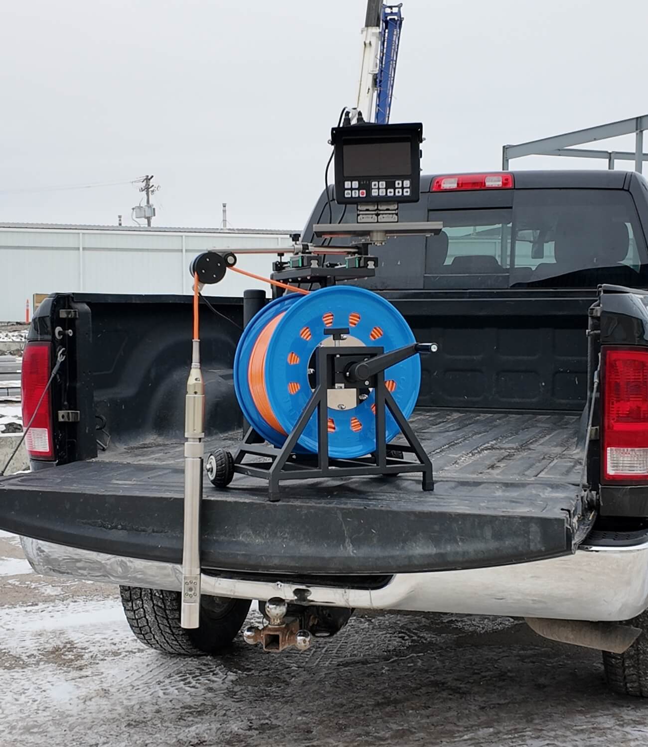 - User-Friendly Control Unit: Features a battery-operated, high-definition 13" LCD display for on-site viewing. The system supports snapshot and video capture, with media storage available via USB flash memory. The camera's depth in the well can be monitored directly on the display for enhanced operational awareness. A USB wireless keyboard is used for adding on-screen comments and notes during inspections.